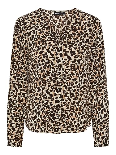 Bestseller A/S dam Pcnova Ls skjorta Noos Bc blus, Silver mink/ape: leo, L