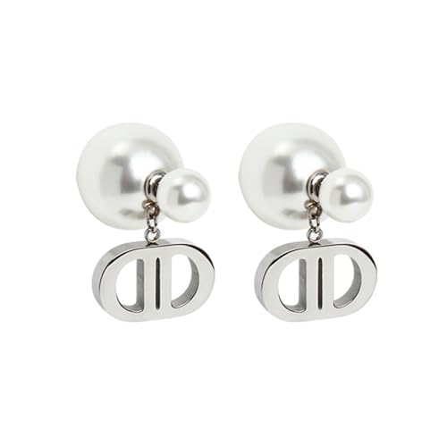 Vintage pärla öron bokstäver örhängen, dubbelsidig pärlörhängen, dinglande örhängen för kvinnor, smycken gåva för kvinnor och flickor(silver), Metall, Ingen ädelsten