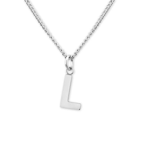 Kedja med bokstäver silver - hudvänligt halsband för kvinnor (A-Z hänge) I Silver bokstavskedja. (Brev L)