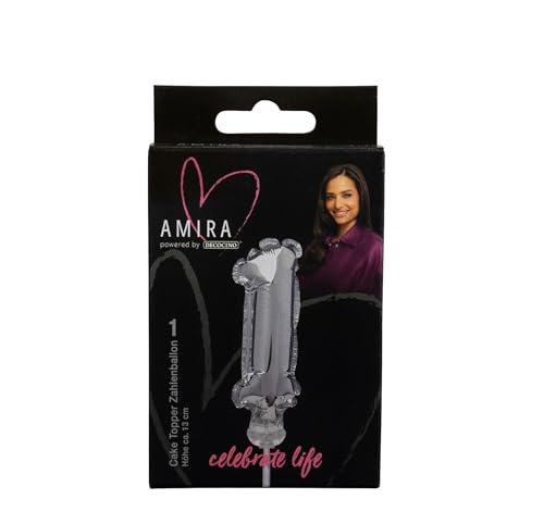 AMIRA drivs av decocino – nummerballong nr. 1 – perfekt för varje JGA, födelsedag, bröllop, silver, topp för kakor och tårtor, caketopper