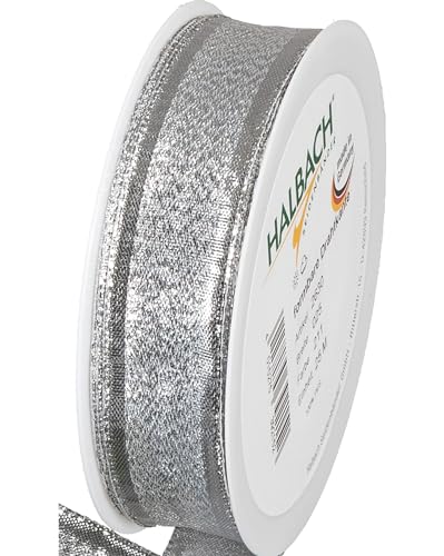 Halbach sidenband presentband silver – tillverkad i Tyskland – med formbara trådkanter | 25 mm x 25 m | ädelt gyllene band för bröllop eller jul