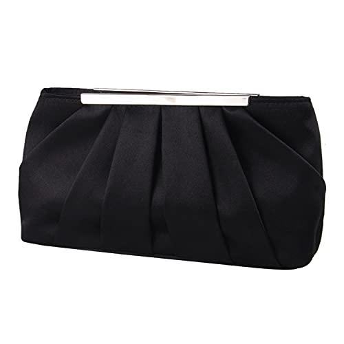 Jywmsc dam satin kvällsväska elegant satin plissé kväll clutch plånböcker för kvinnor silver bröllop handväska, svart, S, Elegant, elegant, modern