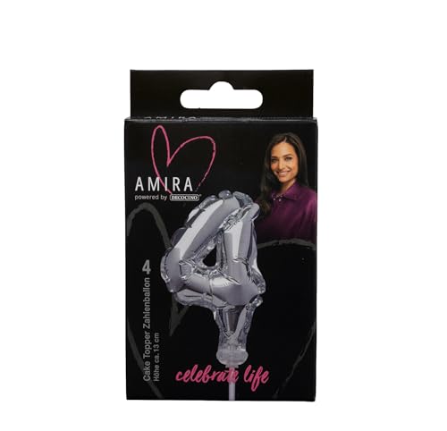 AMIRA drivs av decocino – nummerballong nr. 4 – perfekt för varje JGA, födelsedag, bröllop, silver, topp för kakor och tårtor, caketopper