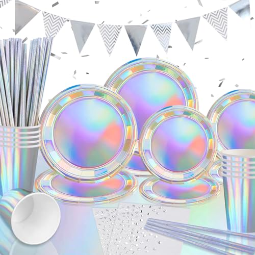 Bordsservis för födelsedagskalas, 20 gäster, papperstallrikar och servetter. bordsduk, bordsservis för födelsedagskalas i skimrande silver, födelsedag, bröllop, jul, barnkalas, dekoration