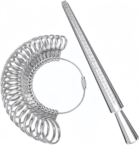 KAHEIGN Ringstorleksmätare, UK dorn stick Z 26 storlekar mått fingerring smycken verktyg för kvinnor män förlovning bröllop (silver), Aluminium