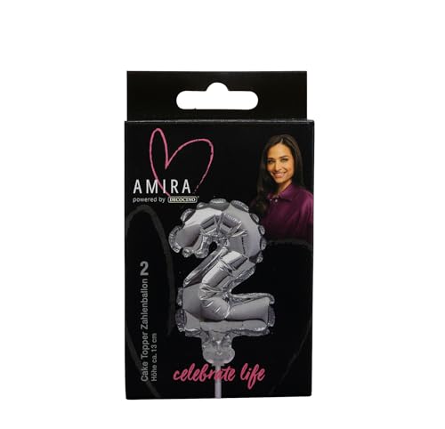 DECOCINO möter AMIRA – nummerballong nr. 2 – perfekt för varje JGA, födelsedag, bröllop, silver, topp för kakor och tårtor, caketopper