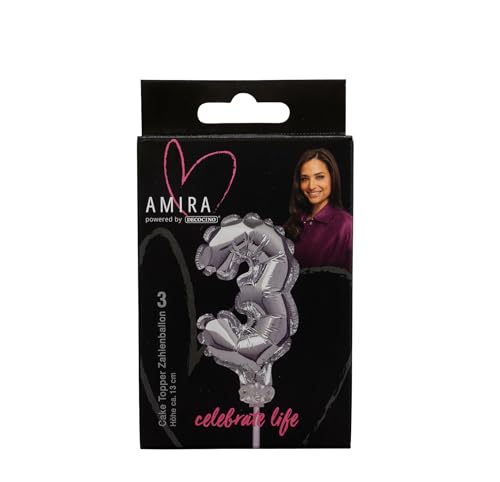DECOCINO möter AMIRA – nummerballong nr. 3 – perfekt för varje JGA, födelsedag, bröllop, silver, topp för kakor och tårtor, caketopper