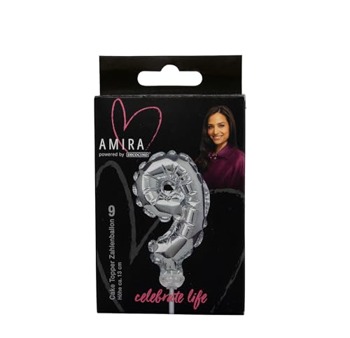 DECOCINO möter AMIRA – nummerballong nr. 9 – perfekt för varje JGA, födelsedag, bröllop, silver, topp för kakor och tårtor, caketopper