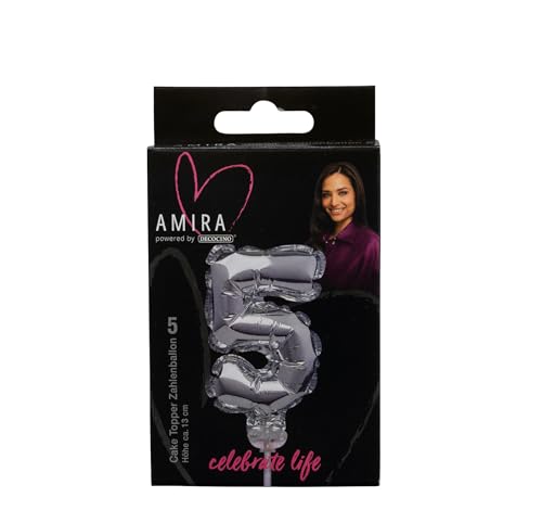 AMIRA drivs av decocino – nummerballong nr. 5 – perfekt för varje JGA, födelsedag, bröllop, silver, topp för kakor och tårtor, caketopper