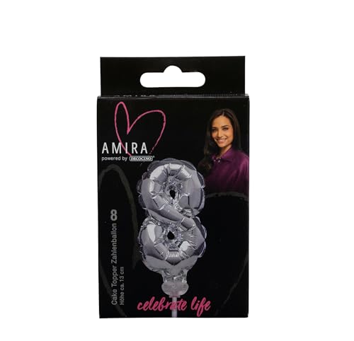 DECOCINO möter AMIRA – nummerballong nr. 8 – perfekt för varje JGA, födelsedag, bröllop, silver, topp för kakor och tårtor, caketopper