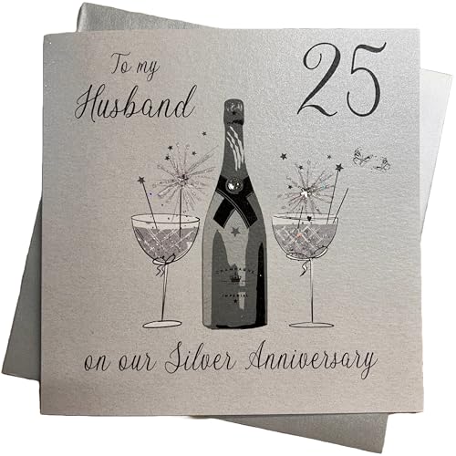 vita bomullskort Large to My Husband silver bröllop, handgjort 25:e årsdagskort, vit, XLBD25H