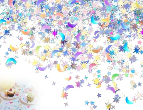 Lhbwhiz 4 000 st metalliska stjärnor och måne glitter konfetti, födelsedagsdekoration, bordsdekoration, för årsdagar, fester, bröllop (silver)