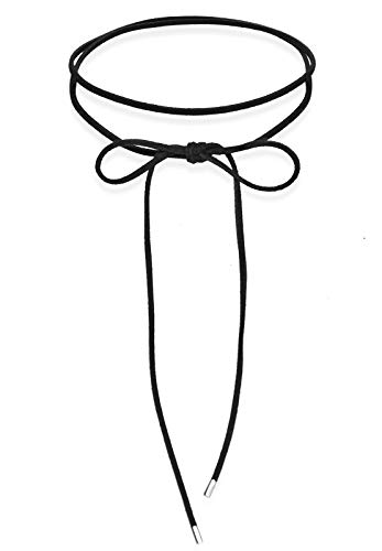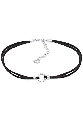 Elli Halsband dam choker rosett trend blogger med velourläder svart i 925 sterlingsilver, 36, Läder, Utan