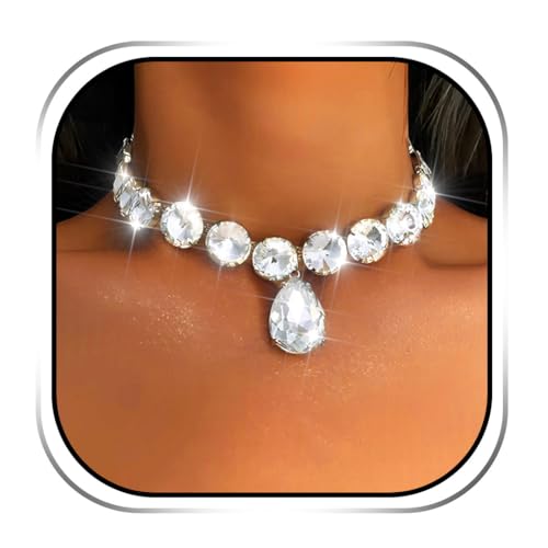 Evlry kristall choker halsband silver strass halsband glittrande smycken, bal tillbehör för kvinnor, Einheitsgröße, Strass, Ingen ädelsten