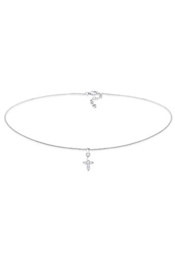 Elli halsband damer choker kors religion med zirkoniumkristaller i 925 sterlingsilver, 360, Sterlingsilver, Kubisk zirkonia