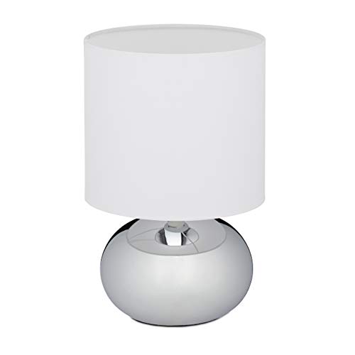 Relaxdays 10029515_55 Touch sänglampa, justerbar, modern 3 nivåer, E14 nattlampa, kabel 28 x 18 cm, silver, järn, tyg, plast, 1 element