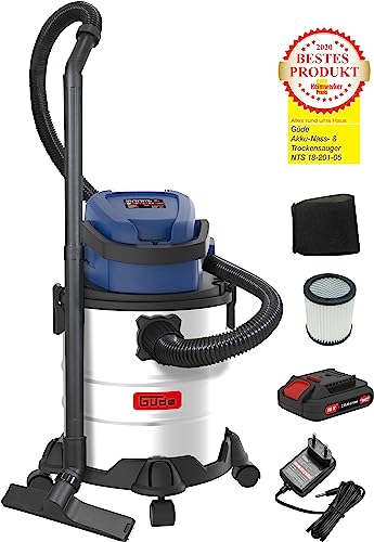 Güde Batteri våt- och torrdammsugare NTS 18-201-05 (18 V, Easy-Energy-Exchange, 20 l behållare av rostfritt stål, utblåsningsfunktion, 2 m slang, inkl. Olika filter fog-/golvmunstycke, med 2,0 Ah