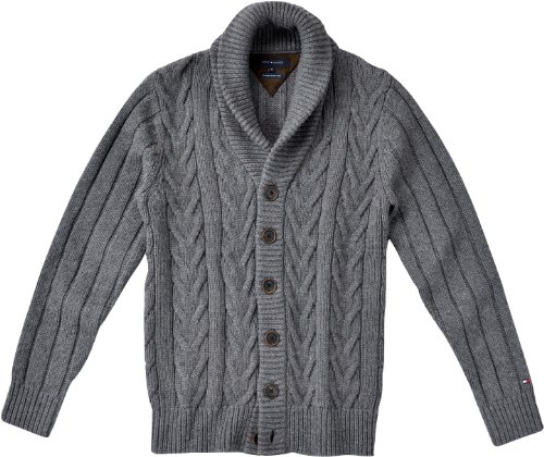 Tommy Hilfiger herrkofta 887804254/Chris Shawl Cable Cardi CF, Grå (Silver Fog Htr), 48 SE