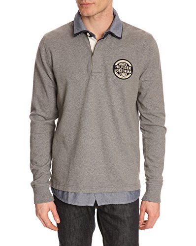 Tommy Hilfiger Herr Sean Rugby L/S Vf pikétröja, Grå (Silver Fog Htr), XXL