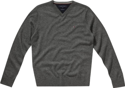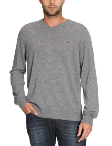 Tommy Hilfiger herrtröja lambswool V-NK CF/857820938, Grå (043 Silver Fog Htr), 48 SE