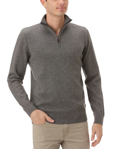 Tommy Hilfiger herrtröja Anthony Shawl-NK CF/887820913, Grå (043 Silver Fog Htr/Snow White/Midnatt), 50 SE