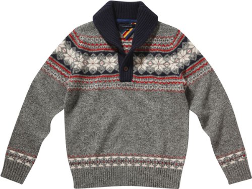 Tommy Hilfiger herrtröja Calico HDD BTN-MK CF/887820915, Grå (043 Silver Fog Htr/Rio röd/midnatt), 50
