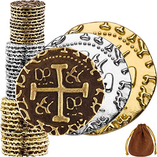 Piratmynttillbehör, 102 brons, silver och guldmyntset, metall guldtalare, dekoration, dubloner för DND-brädspel, cosplay, realistisk medeltida pengar-imitation, piratskatt – M, L, XL storlekar mix