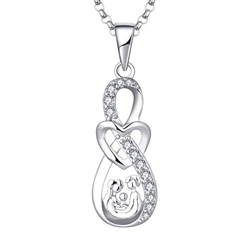 JO WISDOM mamma halsband silver 925, kedja hänge mor barn familj kärlek hjärta med 3A zirkon, smycke för kvinnor, Silver, zirkon, sterlingsilver, Kubisk zirkonia