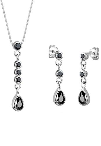 Elli kvinnors 925 sterling silver hänge halsband av längd 45 cm med dinglande örhängen, Sten Metall Sterlingsilver Ädelsten Silver, Kubisk zirkonia