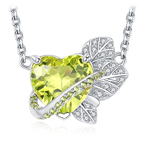 JewelryPalace Mint Heart Love 4.2ct Zirconia Kedjehänge, Kedja Med Grön Sten Smyckeset, Cocktailhalsband För Damer Silver 925 Halsband För Damer Med Blad, Smycken Flickpresent För Kvinnor 45cm