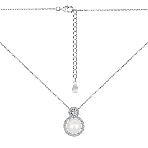 Rawrr kvinnors modesmycken inlägg pärla hänge halsband 925 sterlingsilver halsband 5A vit sten pärla hänge halsband 40–45 cm lång lämplig för alla platser