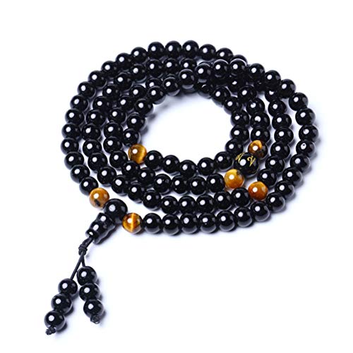 Leikance naturligt svart obsidian pärlor armband, simulering kristall ädelsten tibet buddhistisk bön pärla armband halsband, 9 inch, Sten Silver