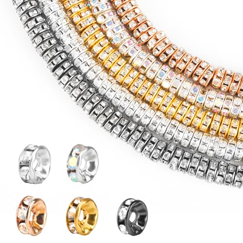 500 stycken glittrande pärlor för armband, gör-det-själv-pärlor för tråd, strass-sten, pysselpärlor för att trä upp, runda mellanpärlor för armband och halsband (guld, silver, roséguld, gunmetall, AB)