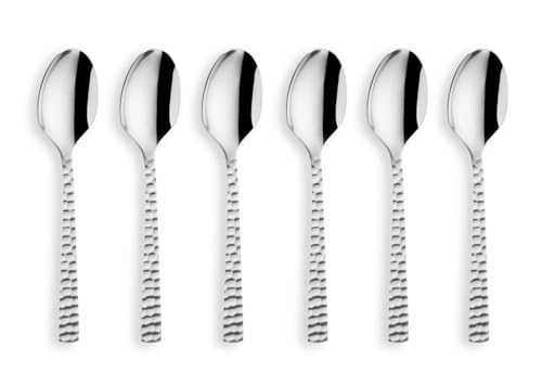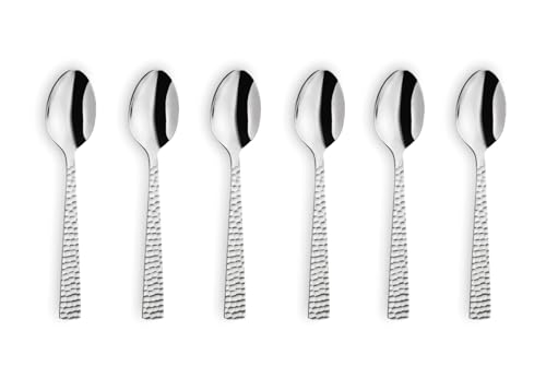 Amefa FELICITY Kaffeskedsset 6 delar, högkvalitativa små skedar, hamrade, tesked i hammarslag-design, 18/0 kaffesked rostfritt stål diskmaskinssäker