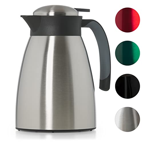 Blumtal Termos kanna 1l - BPA-fri tekanna med Quick Tip-förslutning - läckagesäker kaffekanna thermo för långvarig isolering/termos kanna te - kaffekanna - te-termos kanna rostfritt stål silver
