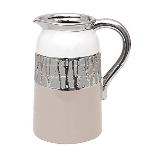 Dekohelden24 Modern deco designer keramisk vas/kanna i cappuccino/silver/vit. Mått L/B/H: 16,5 x 12,5 x 20,5 cm, 213134