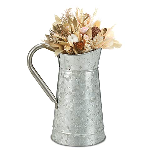 Relaxdays Vintage kanna, galvaniserad metall, blomvas torkade blommor, lantlig dekoration trädgård, balkong, vardagsrum, silver, 1 st