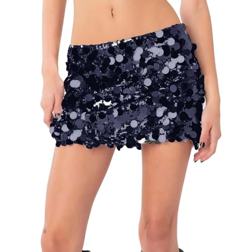 YNIEIAA Damer paljetter kjol glitter kjol minikjol hög midja höftkjol pennkjol svart silver röd vit kjol performance kostymer för kvinnor för karneval karneval party, Marinblå, S