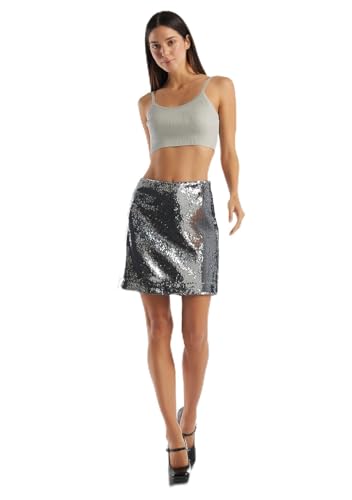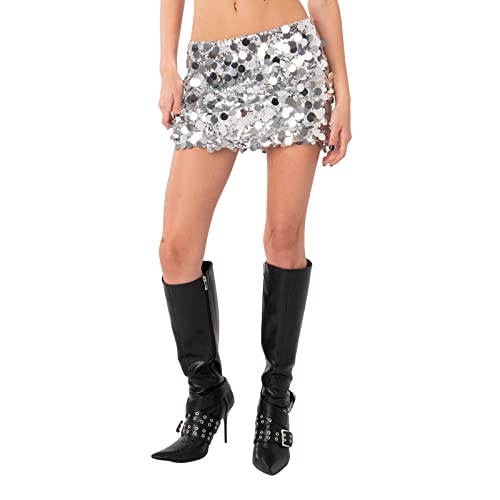 YNIEIAA Damer paljetter kjol glitter kjol minikjol hög midja höftkjol pennkjol svart silver röd vit kjol performance kostymer för kvinnor för karneval karneval party, silver, S