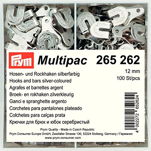 Prym - Prym Stål Silver (12mm) Byxor och Kjol Krokar Barer - 100 Bitar