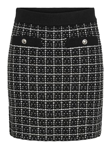 Pcnilja Hw stickad kjol Pa Bc, Svart/kontroller: vit och silver Lurex, S