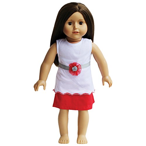 The New York Doll Collection kläder - Vit Topp och Röd Kjol med Motsvarande Röd och Silver Bälte - För 18 tum / 46 cm Mode Dockor - Dockor Kläder Tillbehör