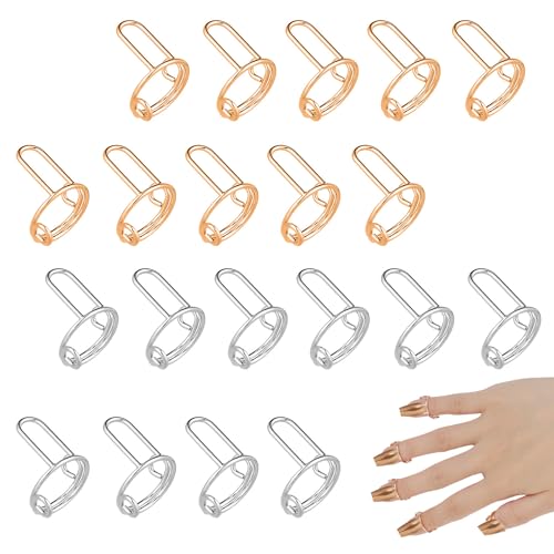 20st Wudu Nagelringar, Justerbara Nagelringar Återanvändbara Metallfingerspikringar för Kvinnor Inget Lim Nagelsmycken Fingertoppspresent Dekorationer för Att Bära Manikyrnaglar (Guld, Silver)