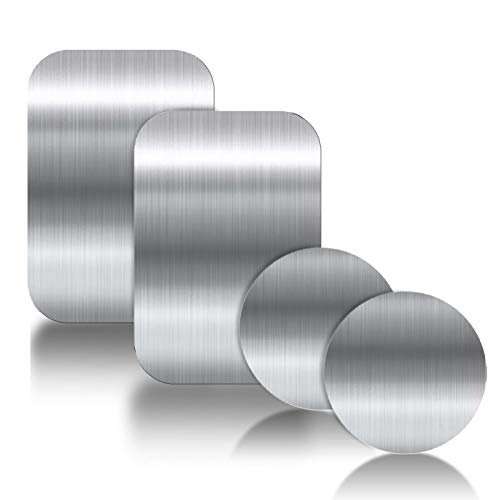 YGKJ 4 st metallplattor med 3M lim för magnetisk biltelefonhållare/universell magnethållare metallplatta för smartphone (2 runda och 2 rektangulära) (silver)