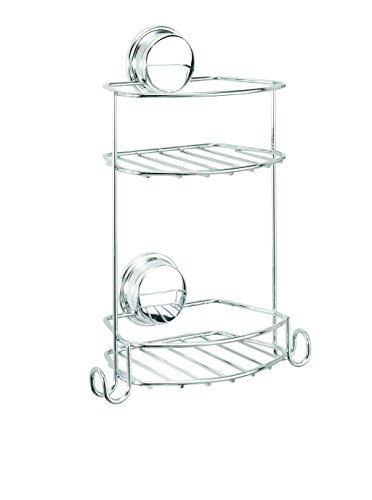 Croydex förkromat stål rostfritt stift 'n' Lock Plus toalettpappershållare med lim eller skruvfäste, silverfärgad kompakt förvaringskorg med 2 hyllor silver