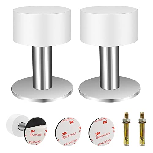 GZkushi 2 st. dörrstoppsvägg, 304 rostfritt stål dörrstopp självhäftande, för väggmontering för att skydda dörrarna, med 2 expansionsskruvar och 2 3M-lim (vit/silver)