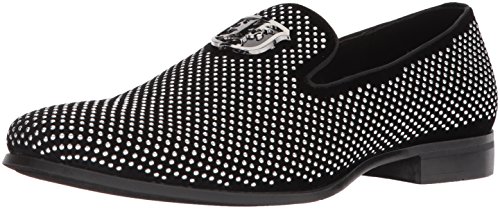 STACY ADAMS Men's Swagger Studded Ornament Slip-On Driving Style Loafer, Black/Silver, 10.5 M US