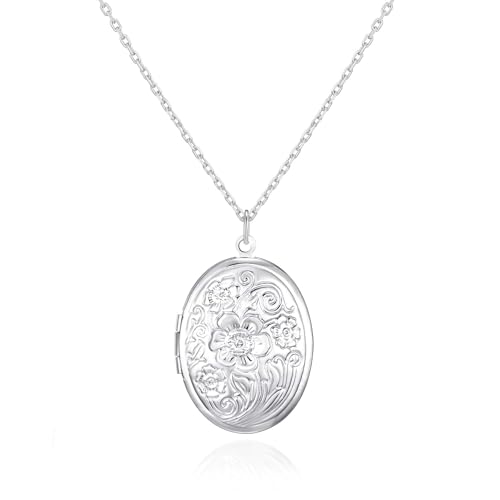 Alexander Castle 925 sterling silver medaljong halsband för kvinnor – flickor 4 fotomedaljong – 23 mm x 23 mm hjärtmedaljong med 45 cm silverkedja & smycken presentförpackning – virvlar design,