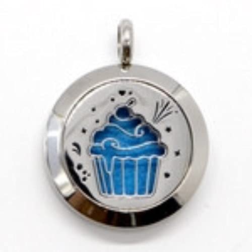 ZEN ARÔME CA-COL-Cake aromaterapi eterisk olja - diffusorsmycken läderhalsband och medaljong i rostfritt stål med "Cupcake"-mönster - innehåller 5 färgglada doftpärlor - Zen'arom, krom