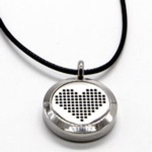 Zen'Arom CA-COL-hjärta aromaterapi eterisk olja-diffusor smycken läderhalsband och medaljong i rostfritt stål med"Pixel Heart"-mönster - innehåller 5 färgade parfymerade skövards - Zen'Arom, krom